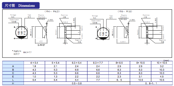 1-1貼片電解電容適用于電腦主版,車載,移動DVD,遙控器,多媒體收音機,多媒體音箱等! 1-2常規(guī)溫度,85℃,2000小時壽命,適用電子線路中。 1-3貼片鋁電解電容通常起濾波、旁路、耦合、去耦、轉(zhuǎn)相等電氣作用,是電子線路必不可少的組成部分。 標準品VS系列 A,適用于回流焊 B,性能穩(wěn)定,高可靠性 C,適用于高密度表面貼裝 D,壽命-40℃~-85 ℃,2000H E, 體積:4*5.4 5*5.4 6.3*5.4 6.3*7.7 8*10.5 10*10.5 F, 容量:0.1UF-1500UF G, 耐壓:6.3V-100V